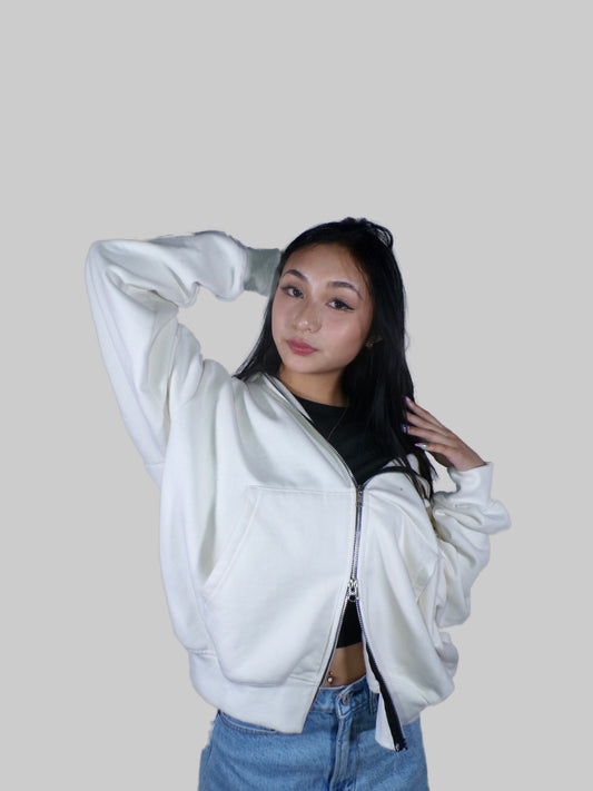 “BLOOM” IVORY CREAM SOLID DOUBLE ZIP HOODIE