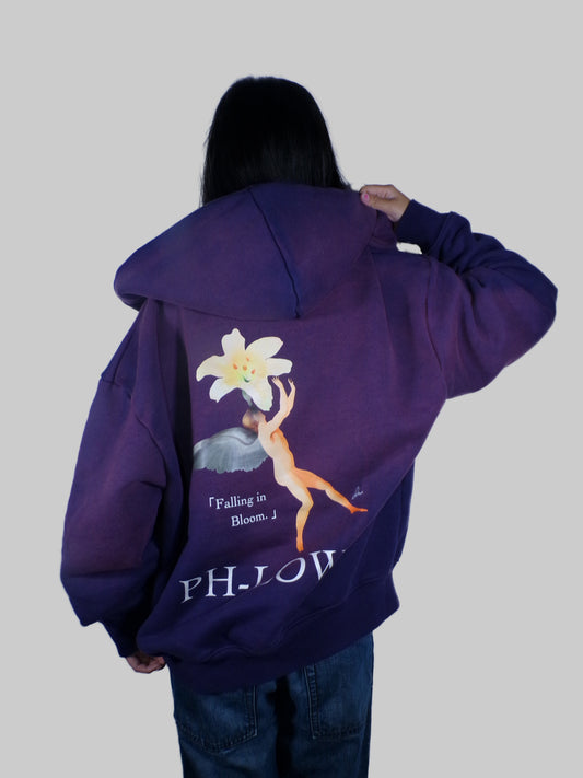 “BLOOM” PURPLE RUST WASHED DOUBLE ZIP HOODIE