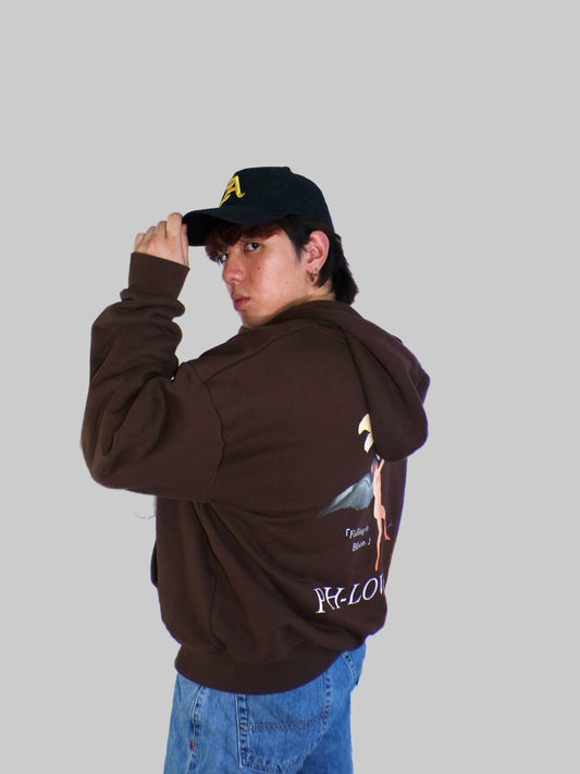 “BLOOM” MOCHA BROWN SOLID DOUBLE ZIP HOODIE