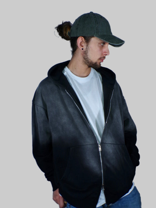 “BLOOM” BLACK ICE WASHED DOUBLE ZIP HOODIE