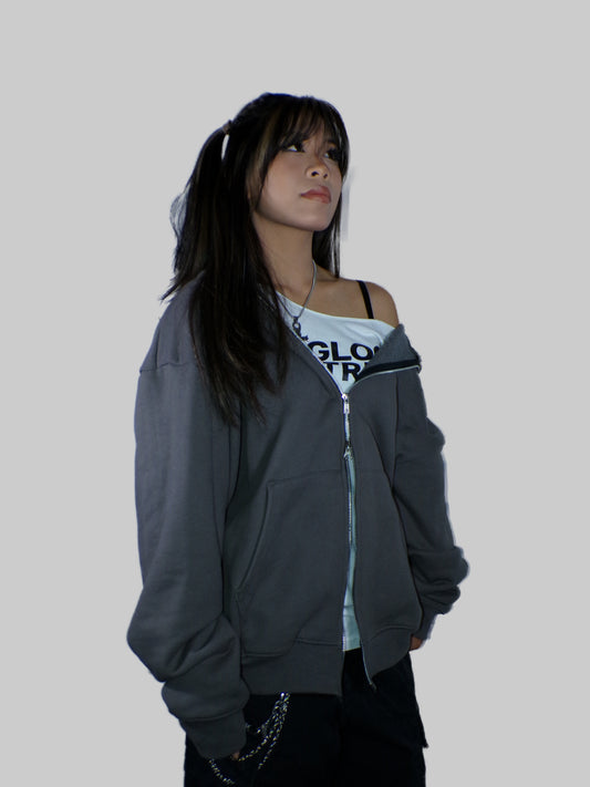 “BLOOM” CHARCOAL GRAY SOLID DOUBLE ZIP HOODIE